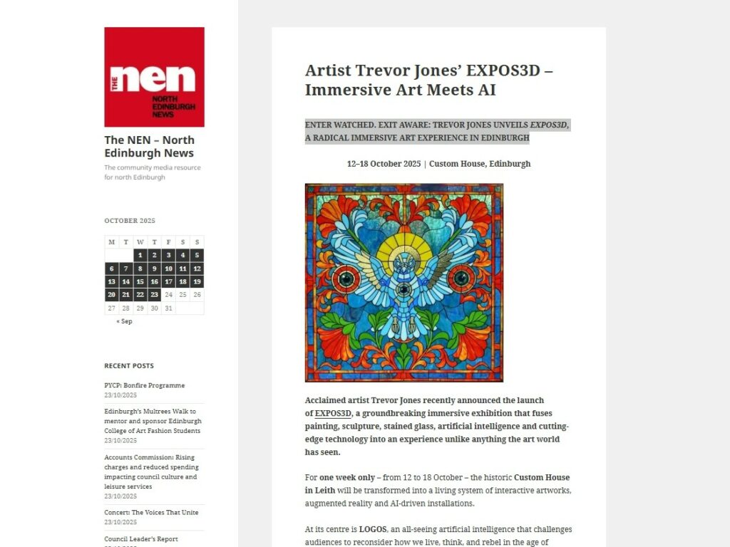 EXPOS3D: Artist Trevor Jones unveils radical immersive art experience in Edinburgh 12–18 October 2025 | Custom House, Edinburgh