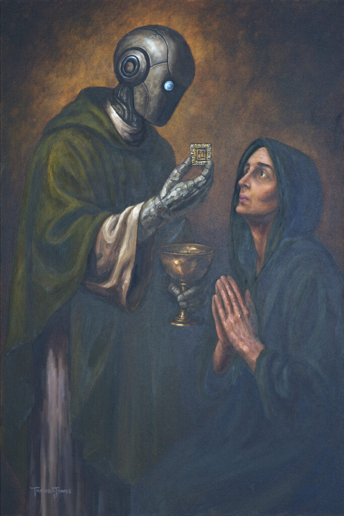 physical, digital & interactive art where AI surveillance, God & rebellion battle for our future.